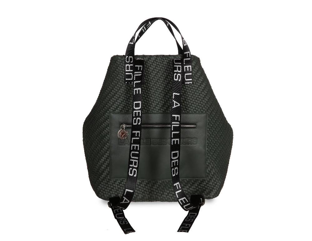 Backpack in soft, woven imitation leather.