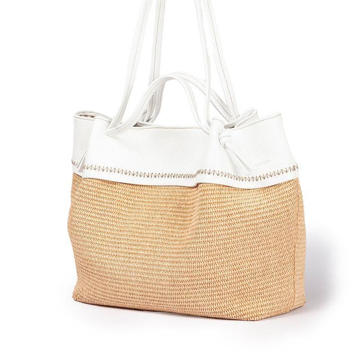 Roberta Gandolfi Ambra large borsa a mano o shopping in rafia e pelle martellata