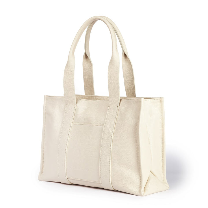 Design minimal con linee pulite e sobrie per uno stile elegante e versatile. Perfetta per l'ufficio e non solo. Realizzata in vitello martellato di alta qualità, leggera e resistente al tempo stesso, adatta per un uso quotidiano. Una comoda tasca esterna per accedere rapidamente agli oggetti di uso frequente. Spaziosa e di dimensioni adatte per contenere documenti formato A4, laptop e tablet. Un tocco di eleganza con charm decorativo portatessera e cuoricino racchiusi in un unico pendente che può essere staccato ed usato come pratico portachiavi. Questa borsa è stata pensata per offrirti praticità e stile in ogni occasione. Scheda Tecnica Materiale : Pelle di vitello martellata Fodera : tessuto Tracolla: --- Chiusura: zip Colore accessori metallici : col. Oro Chiaro Piedini metallo : --- Misure: 38 x 25 x 13 cm (lunghezza x altezza x profondità) 15 x 10 x 5 inch (width – heigh – deep) Lunghezza tracolla: 55 cm - 21 inch Luce manici : 25 cm – 10 inch Altri dettagli : tasca interna chiusa da zip e altra doppia tasca per riporre gli oggetti più piccoli Peso : 0,715 kg - 1,57 lb Cura : Pulire con panno morbido e crema neutra